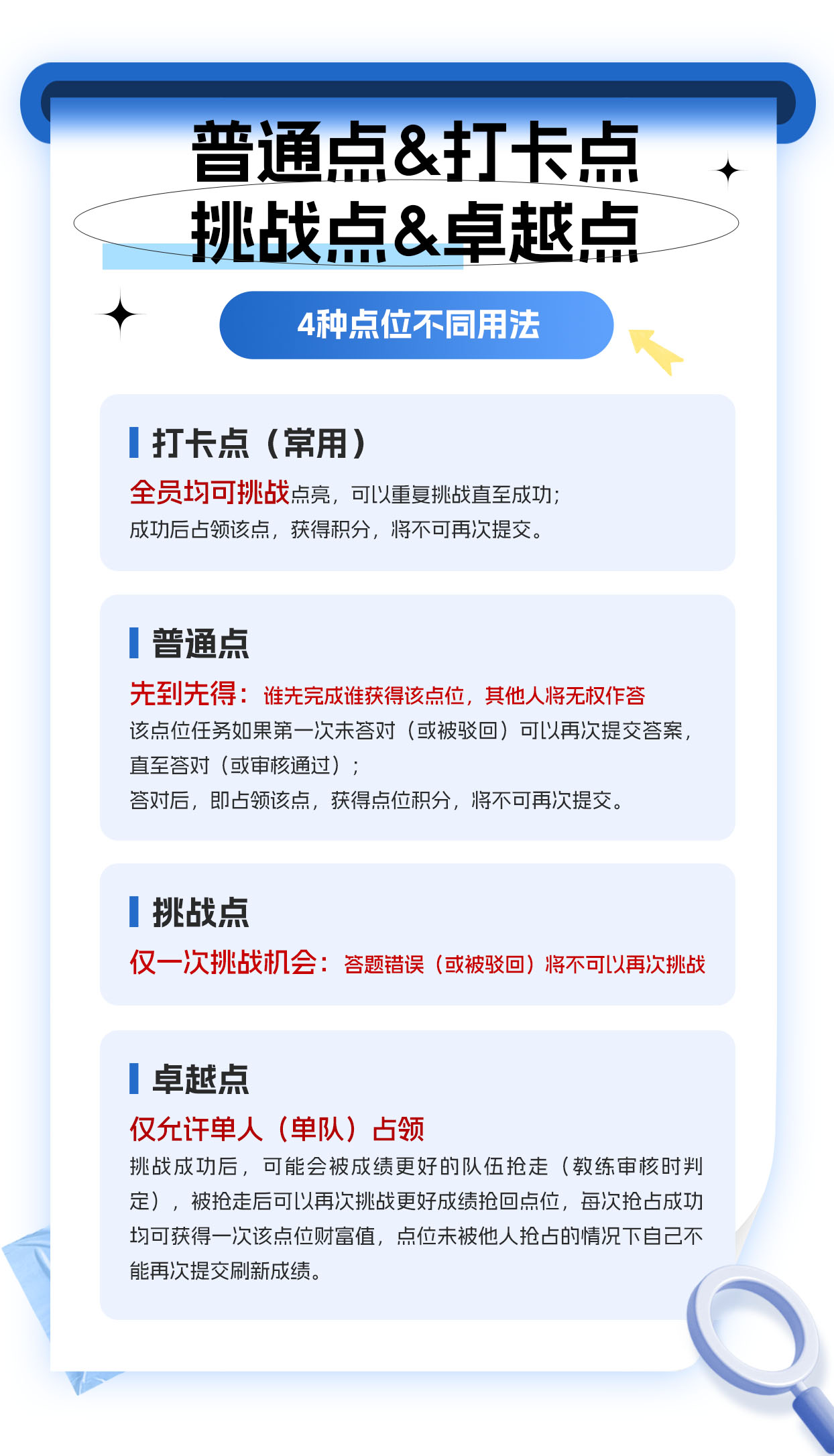 普通点&打卡点&挑战点&卓越点的用法