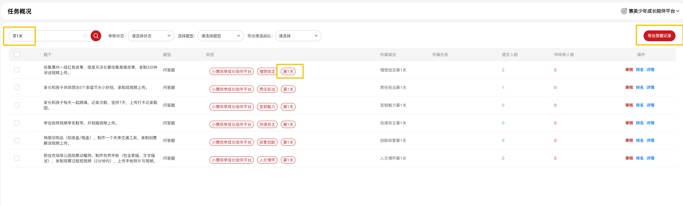 如需导出单个任务的答题记录,需先搜索改任务,使任务页面仅有当前任务时再点击导出,如下图: