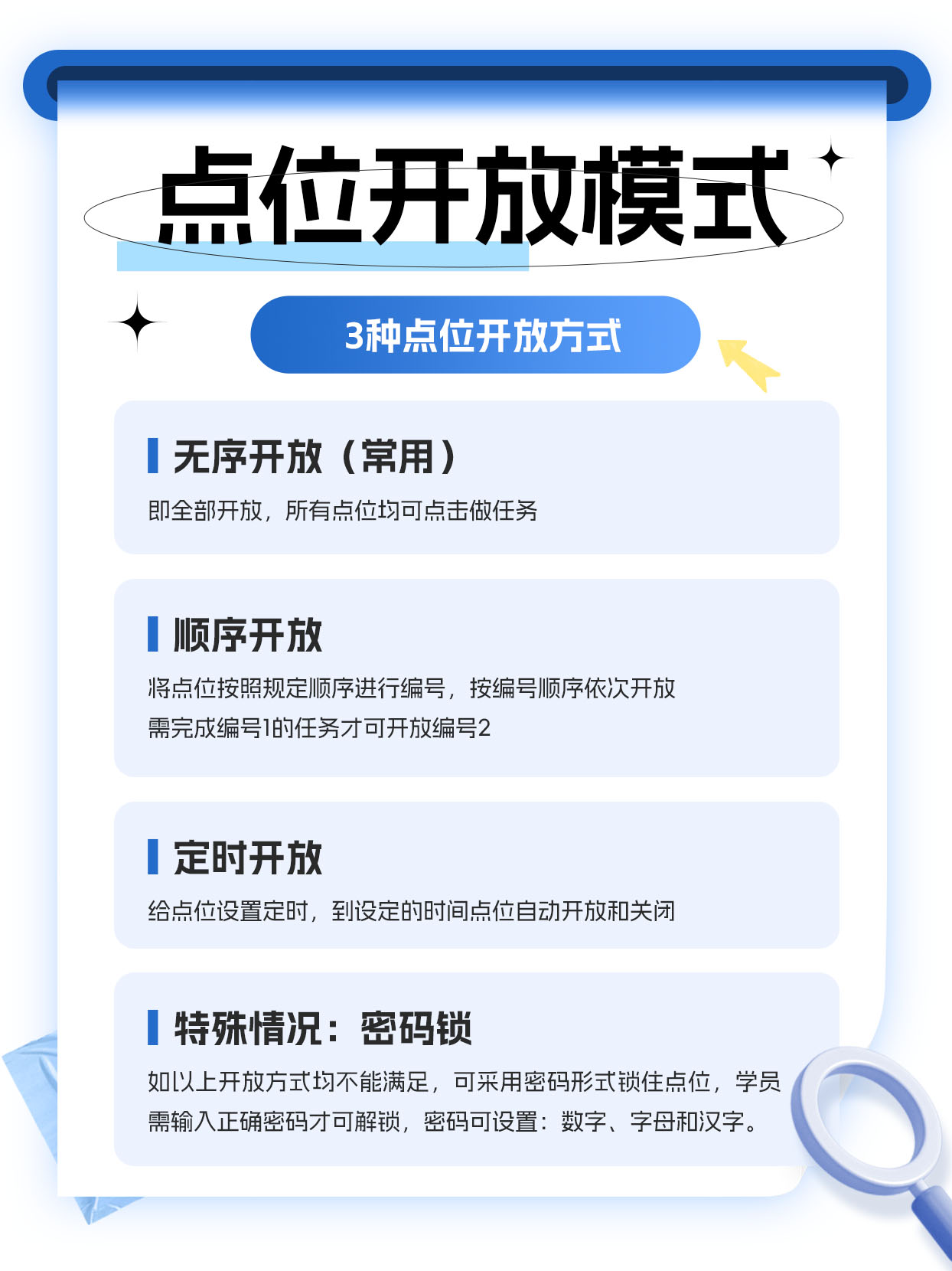 点位开放模式:定时开放,顺序开放